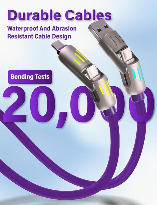 240W 4-in-1 USB C Fast Charging Cable with Breathing Light