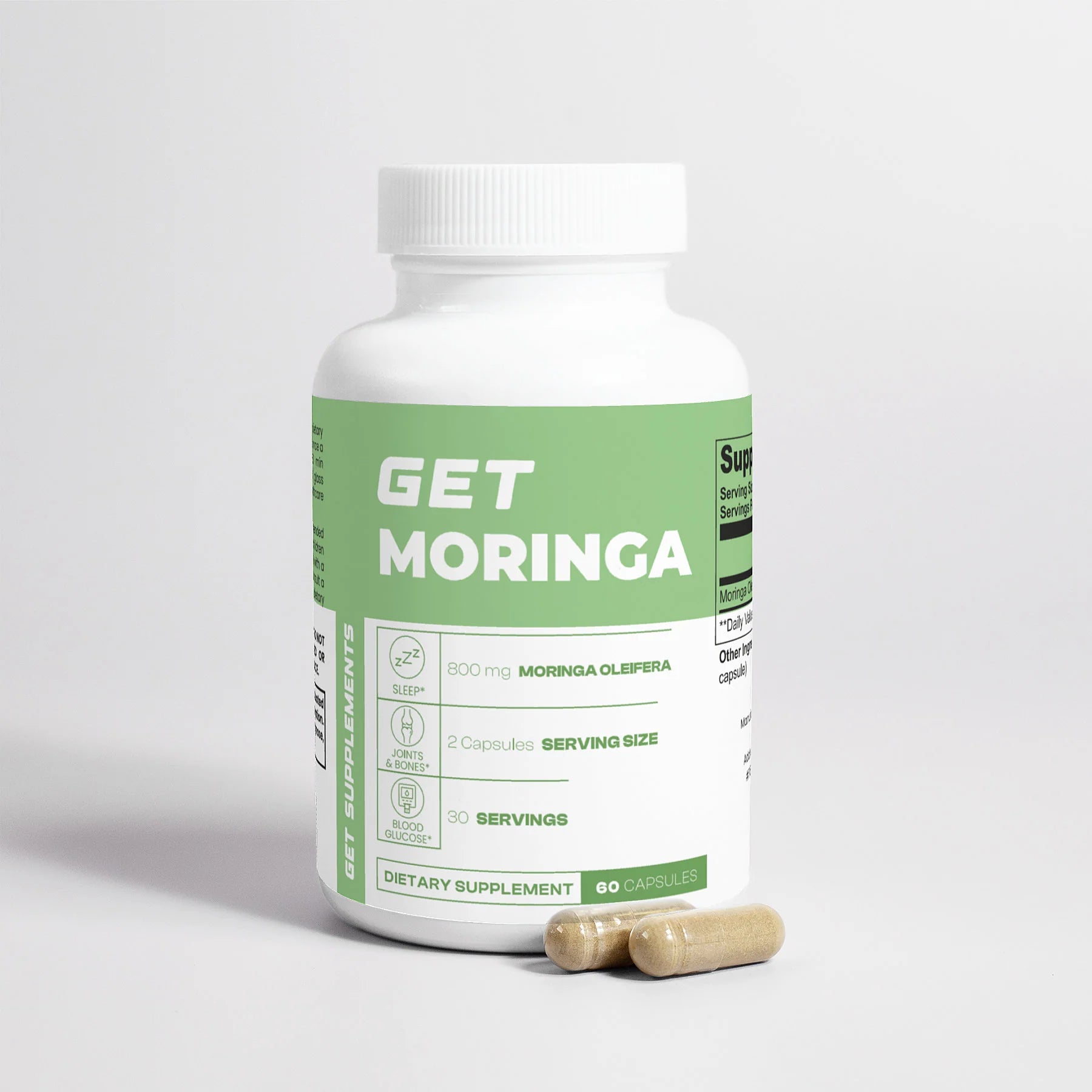 Supplement Facts: Moringa oleifera (leaf); Capsule: Cellulose (vegetable capsule).